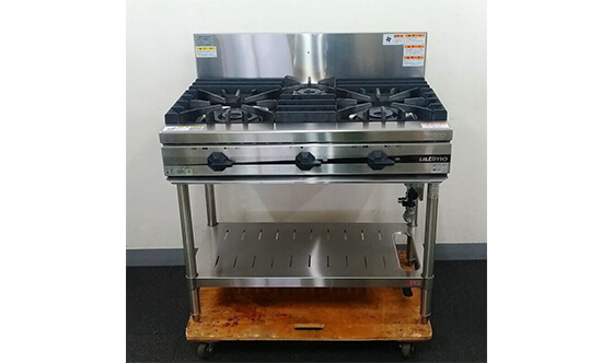 レンジトップ面は全面五徳(堅牢な鋳物製)、強力ユニバーサル二重バーナを採用で、作業効率を高めます。